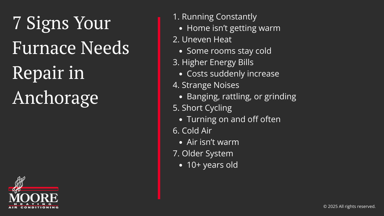 If your furnace is struggling to keep up this winter, contact Moore Heating for reliable heating repair in Anchorage today.